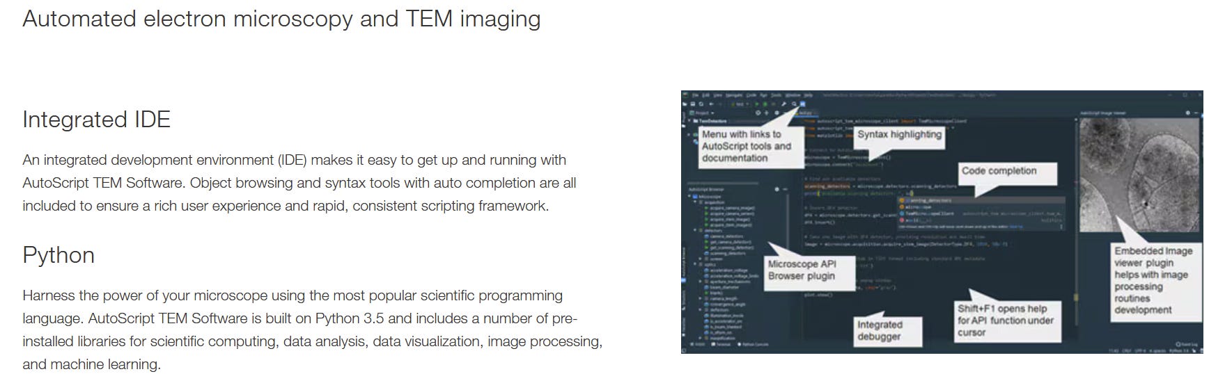 But this consolidation comes with costs that affect the future of autonomous science. The clearest symptom is the poor state of software for scientific instruments. For instance, Thermo Fisher markets “automated electron microscopy” solutions, but to actually automate anything you need to pay a license to use their Python API and their proprietary IDE. The state of the science instrument industry is such that in 2025, you pay millions for an instrument and a recurring service contract, then pay again for the privilege of having programmatically control over your instrument.