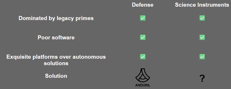 And the Opportunity for an "Anduril for Science Instruments"